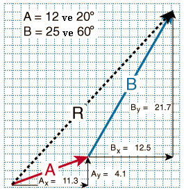 bileşenleri, her bir vektör için bir dik üçgen çizildikten
