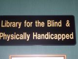 Library sign directing persons to the location of books in Braille at Huntsville, Alabama Public Library