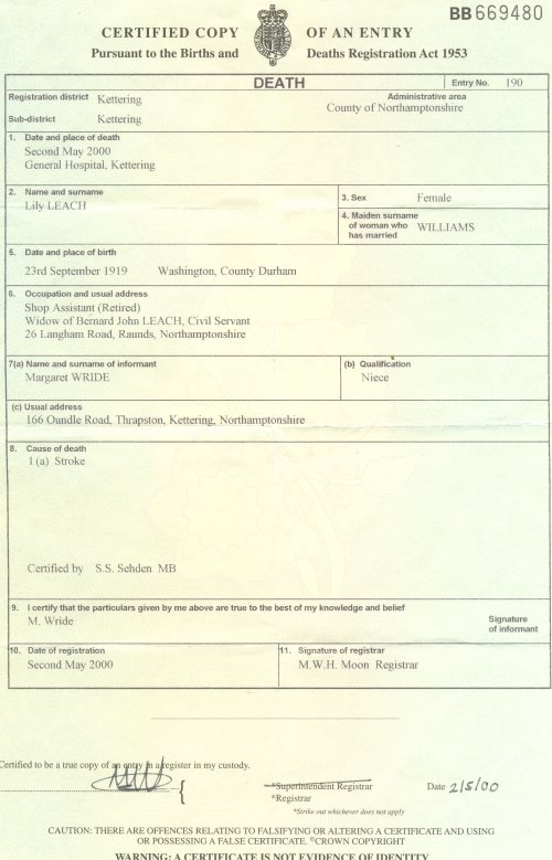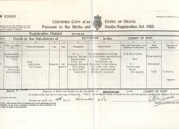 Died 16th November 1959 at Beckenham Cottage Hospital.