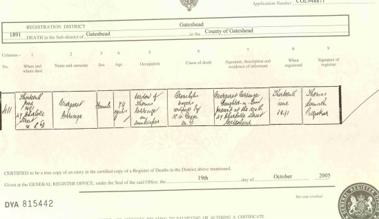 Margaret Gorringe ( Margaret Cocker) was living with George and Margaret at the time of her death at 47, Charlotte Street, Gateshead, at the age of 79
