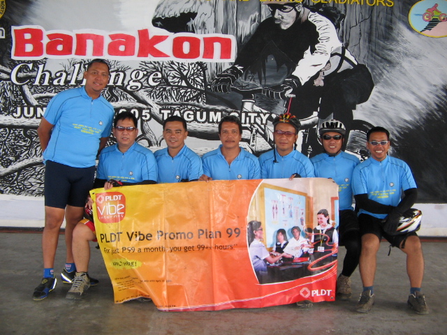 PLDT Davao mountain bikers in 4th Banakon Cahllenge. Member of the PLDT Vibe Team Davao MountainBikers Club (PLDT-DMBC) participated in the 4th Banakon Mountain Bike Trail Challenge held recently in Tagum City, Davao. The event which kicked off the 38th anniversary celebration of the province of Davao was aimed at promoting the eco-tourism particularly the Panas Waterfalls situated in the municipality of New Corilla, davao Del Norte. Shown here are the team members, Elmer I. Suelan, Nestor Nabua, Jojo Sales, Boy Sallan, Bong Crave, Ertick Pastrana, Abel Ordaneta and Edgar Cadiz(Photo by: Elmer Sulan, VisMin Revenue Protection)