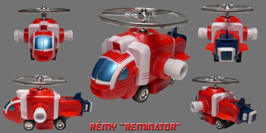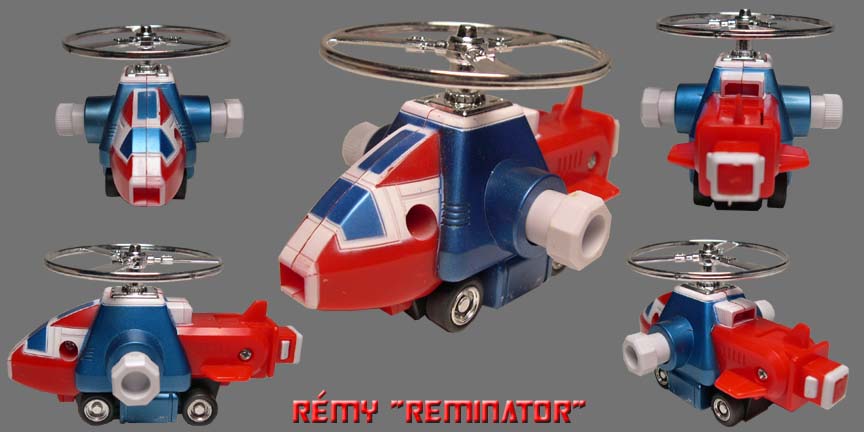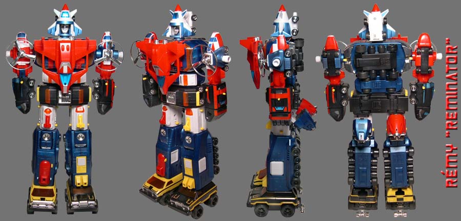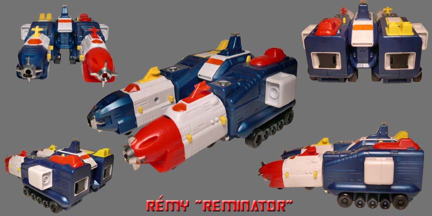 R-8 Rémy's Vehicle Voltron I action figure review: Manufacturer: Matchbox Line, Series/ Wave: Matchbox, 2nd Edition. Year Issue: [1984] Made: [Japan] Scale: [N/A] Box or Card Dimension In Inches: [LxWxD] - forgot to measure - 19 3/16 x 13 1/8 x 4 6/16 Box or Card Assortment Number: [700210]] Packaging Method: Mint In Seal Box. Contents were packed with the following procedure: Rest down on the Styrofoam containers: "1" command jet explorer, "1" fighter plane, "2" advanced recon helicopter, "1" strato weapons module, "1" communication module, "2" multi-wheeled explorer, "2" space prober, "1" jet radar station, "1"rotating personnel carrier, "2" all terrain space vehicle, "1" armored equipment carrier, and "1" instruction sheet. Box Special Note: Front Box Appearance: Voltron art and the actual figures. Back Box Appearance: Ads of Voltron I (Vehicle), Voltron II (3 into 1 robots), Voltron III (Lions) in both the regular size and the miniature size. Box Point or Robot Point: [N/A] - Not Applicable. Approximately Toy Dimension In Inches: Height Up To The Head: 15 Maximum Height: 15 Width from shoulder to shoulder: 8 1/2 Maximum Width: 8 1/2 Dept: 4 1/2 Toy Stamp/ Fine Print: 1, 2, 3, 4, 5, 6, 7, 8, 9, 10, 11, 12, 13, 14, 15, follow by (Japanese text) JAPAN 1982. NOTE: The instruction sheet had the logo of Matchbox and a fine print of "POPY © TOEI". Strangely, none of these fine prints were transferred onto the figure themselves. Toy Stamp/ Fine Print Location: Can be found on the underside of each vehicle. Each vehicle has it own number plus the copyright for example: Command Jet Explorer is "1 (Japanese text) JAPAN 1982", Fighter Plane would be "5 (Japanese text) JAPAN 1982", etc. Transformation Of Difficulty: [Easy] Material Durability: [+B] - Pretty durable but don't drop Voltron when the 15 pieces are merged into one robot. Toy Materials: Die Cast Metal: None. Chrome Parts: For Command Jet Explorer (wheel pins). 2 Advanced Recon Helicopters (rotor blades and wheel pins). Stato Weapon Module ( front and rear bumper, and also on the top). Fighter Plane ( rear rocket engine). Communication Module (side propellers). Armored Equipment Carrier (scanner). 2 Space Probers (Tip of the vehicle). 2 Multi-Wheeled Explorers (front bumper and knee cap). 2 All Terrain Space Vehicles (the anchoring rear wheel plus the front of the car). Rubber Wheels: Strato Weapons Module, Communication Module, 2 Space Probers, 2 Multi-Wheeled Explorer, Rotating Personnel Carrier, Jet Radar Station. Plastic: All of the 15 vehicles. Clear Plastic Window: Command Jet Explorer, Strato Weapon Module, Fighter Plane, Armored Equipment Carrier, 2 All Terrain Space Vehicles. Stability: [-A] - Robot mode can stand on any surface. Fun Toy: [A] - Definitely a fun toy. Negative Drawback: No major negative drawback. The only minor negative drawback is detaching the chest plate (Fighter Plane) from the torso (Strato Weapon Module) is a hassle. Articulations: Head: Cannot be rotated. Shoulder: Can be swung at a 360 degree and a 90 degree sideway. Arm: Can be bent at a 90 degree angle. Hand: Cannot be rotated. Hip/Waist: Cannot be bent or rotated. Leg: Cannot be bent. Knee: Cannot be bent. Feet/ Ankle: No movement. Robot's Cartoon looks alike: [A] - Definitely looks like the cartoon. Vehicle Mode's Cartoon looks alike: [A] - Same as previous statement. Special Notes: Here are "6" special notes which I thought you should know: 1 - Be extremely cautious when detaching the chest plate (Fighter Plane) from the chest (Strato Weapons Module). The connection is very rigid and reckless act will easily break the white tab connection of the Fighter Plane. 2 - If the piece doesn't want to separate among one another, be sure to unlock the locking mechanism by pressing the pegs or tabs. Some piece involve pressing two pegs at a time. Don't use force to pull the piece unless you see no alternative. 3 - Vehicle Voltron fists can be fired out so make sure your is in working condition and have spring in the arm socket. 4 - Some vehicles that have motorized wheels capability to roll by itself if you winding them a couple of time. As you are winding the wheels, the sound will come out too. These vehicles are: Jet Explorer (head), Strato Weapons Module (torso), Fighter Plane (chest plate), 2Multi-Wheeled Explorers (legs), Rotating Personnel Carrier (right hand), Jet Radar Station (left hand), 2All Terrain Space Vehicles (left and right foot). So make sure your is in working condition. 5 - Vehicles that do not have the motorized wheels capability are the 2 Advanced Recon Helicopters (left and right arm), Communication Module (mid-section), 2 Space Prober (left and right thigh), Armored Equipment Carrier (waist). 6 - To give Voltron robot mode more stability and prevent it from leaning back, pull out the rear chrome wheels from the two All Terrain Space Vehicles (feets) for better footing. Overall Grade: [+A] - Voltron is definitely beautiful!