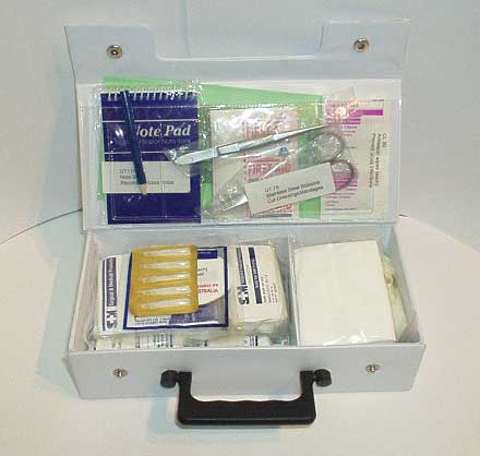A handy collection of basic emergency First Aid items, housed in a compact,
