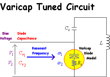 Varicap diodes are used for voltage tuned filters and also for resonators used in Voltage Controlled Oscillators (VCO). The available frequency tuning range depends on the amount of capacitance variation that the diode can provide. The standard Varicap diode transfer equation is