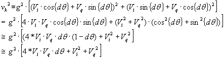 If we assume a maximum gain imbalance of 1 dB (say), then dr ~ 0.05. (i.e. +/- 0.05 = 0.1). The dr^2 term is therefore relatively insignificant and will be ignored. The relative difference between two vectors k and k’=k+1 is then,