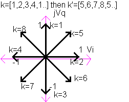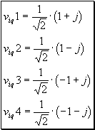 These test vectors have unit magnitude with 4 phases. The actual differences between groups of 2 vectors k and k’ at Complex Baseband will now be,