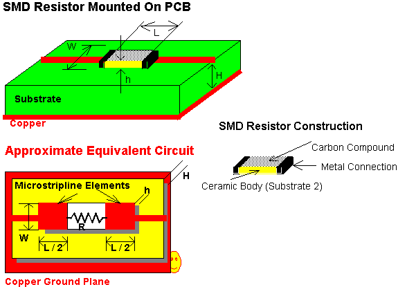 However what is the equivalent Surface Mount Device (SMD) equivalent model? One possible suggestion is to consider it as a micro-stripline element with a defined resistance per unit length based on its geometry,