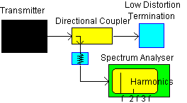 A high power, resistors may not obey Ohm’s Law very well, and may give rise to unwanted artefacts. For example, a 100 Watt sinusoid, applied to a 500 Watt 20 dB attenuator, may exhibit harmonic levels at –70 dB, even if the input is harmonic free! If a transmitters harmonic spurious output needs to be measured, it is better to use a directional coupler and a termination load. These loads tend to generate far less harmonic energy than an attenuation PAD.