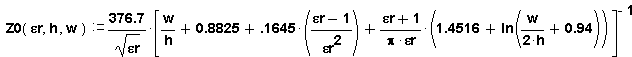In this case h represents the substrate height and w represents the width of the track. Using MATHCAD we can make some general predictions, in this case for a substrate height of 0.3 mm based on FR4 material