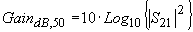 presented in linear V/V terms. In the published data previously shown, at 15.628 dB directly. The final amplifier gain will be higher of course, as power is lost due to impedance mismatch between device input and output terminations. This mismatch loss is recovered through input and output impedance matching networks.