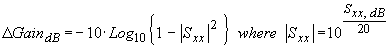Sxx can be either S11 or S22 in linear V/V terms, or if it's expressed in dB as Sxx, dB then the conversion is equally straightforward. For example, if S11, dB is given as -6 dB, then |S11| = 0.5, and if the input match is added, then 1.26 dB of lost gain will be recovered. The same effect will occur with the output match but not simultaneously. However predicting both losses provides a useful indication of achievable gain for initial device selection. (A simulation tool with take account of interactions and provide an exact estimation, but will take much longer to set up and run).