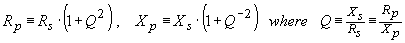 These equations are fundamental to reactive impedance matching and should be committed to memory. From the published data we find that Rp = 16.0 Ohms and Xp = 158 Ohms, at 945 MHz. Since