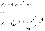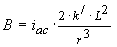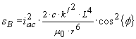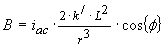 This implies that the magnetic energy density uB component in the plane of the loop at a distance r caused by iac is,