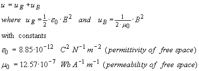 From electromagnetic theory we have a relationship between radiated energy density u and the corresponding electrostatic and magnetic fields E and B given by,