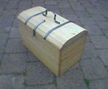 ![]() Lejre Viking Chest made from reused pine crates, with hasp closure. $125 (AUS) L. 110cm. W. 26cm, H. 19cm. In new pine cost = $150 (AUS), with slide lock $300 (AUS)