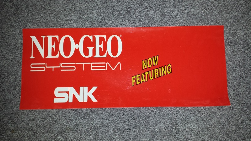 Large Neo-Geo Marquee for sale. Measures 23 3/4 inches wide by 9 1/2 inches tall. In good near new condition. Fits larger cabinets, has space on right for mini marquee.