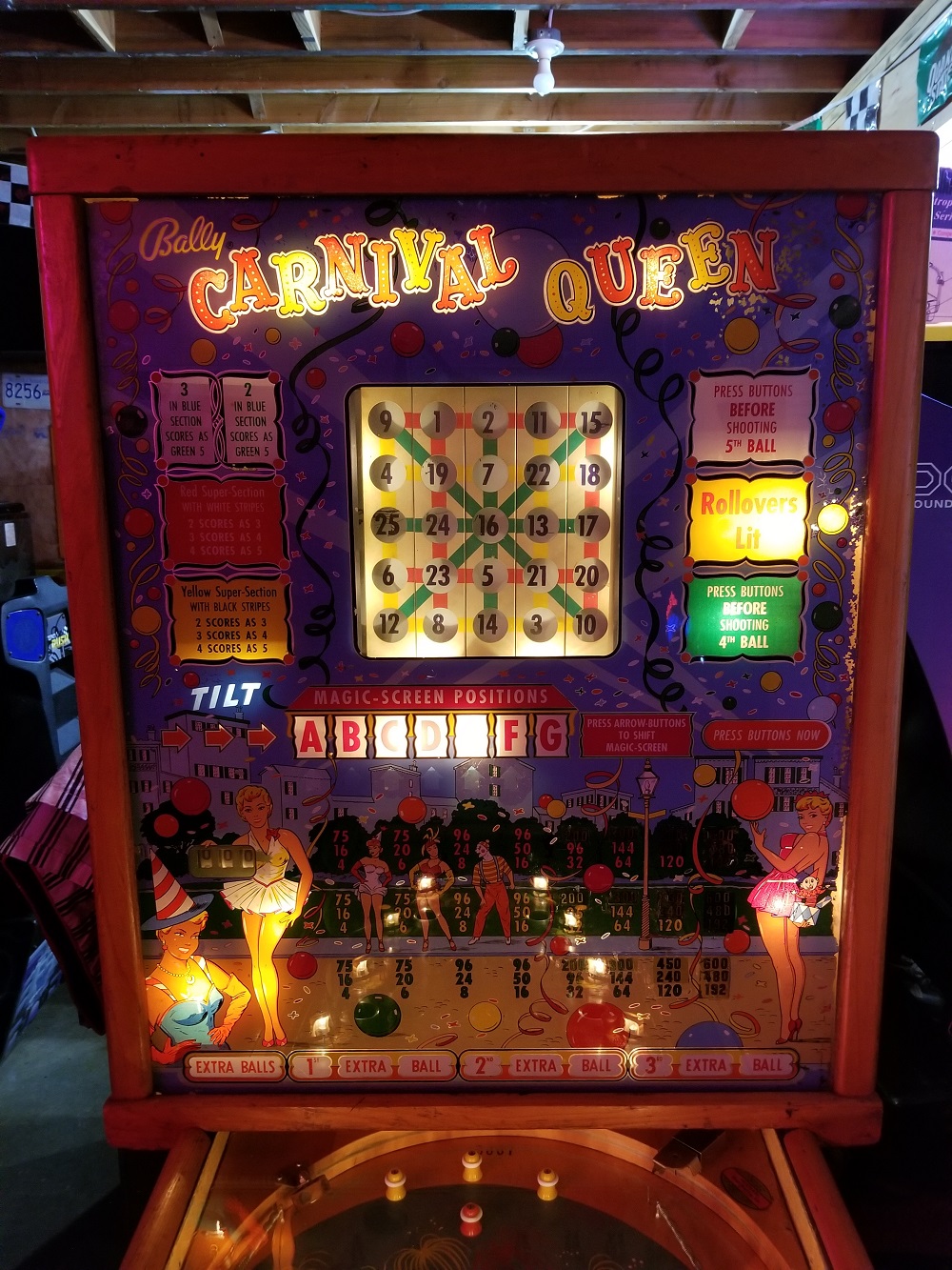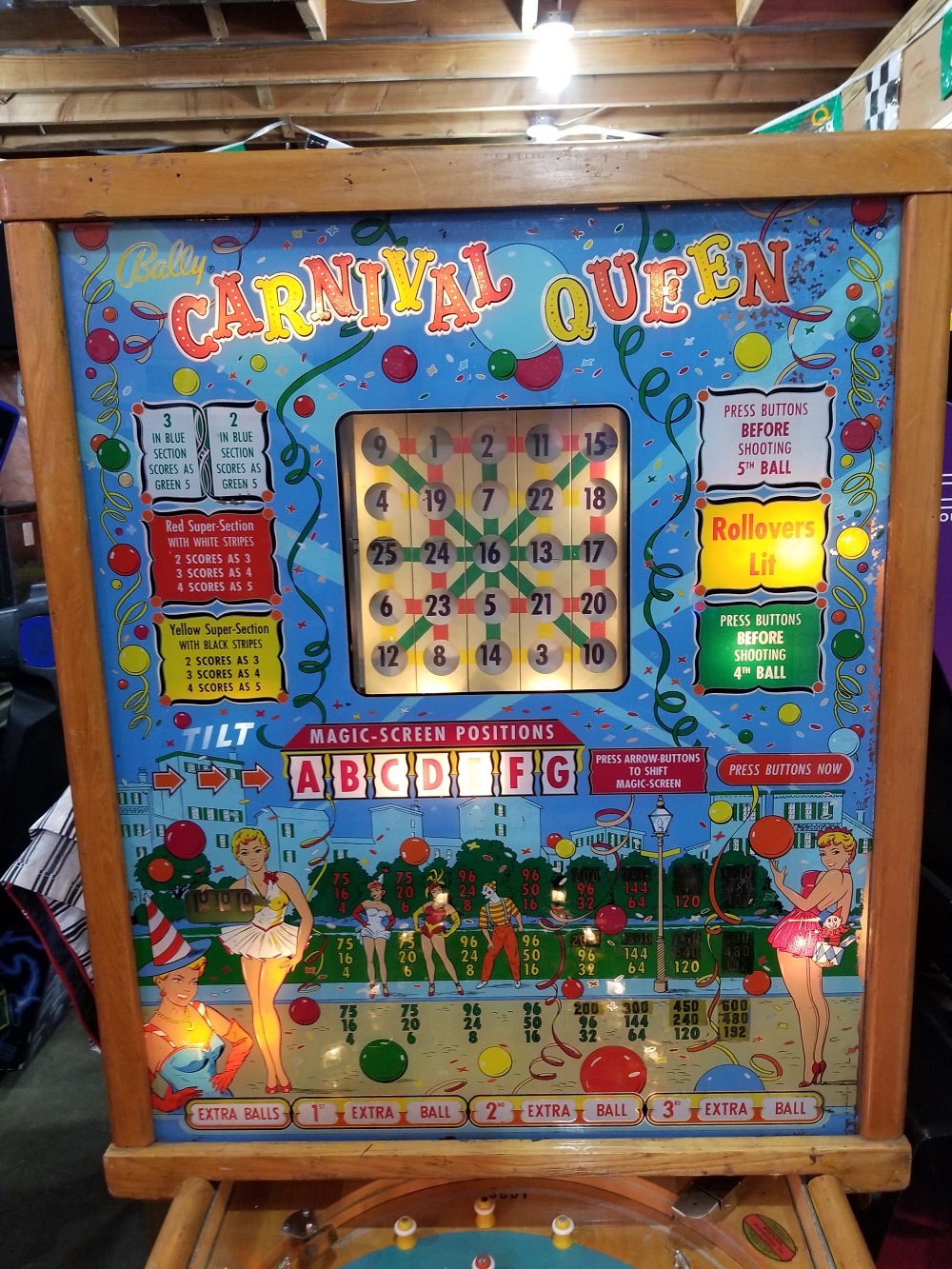 Carnival Queen was produced by Bally Manufacturing Co. in 1958. More of a gambling machine than a pinball.