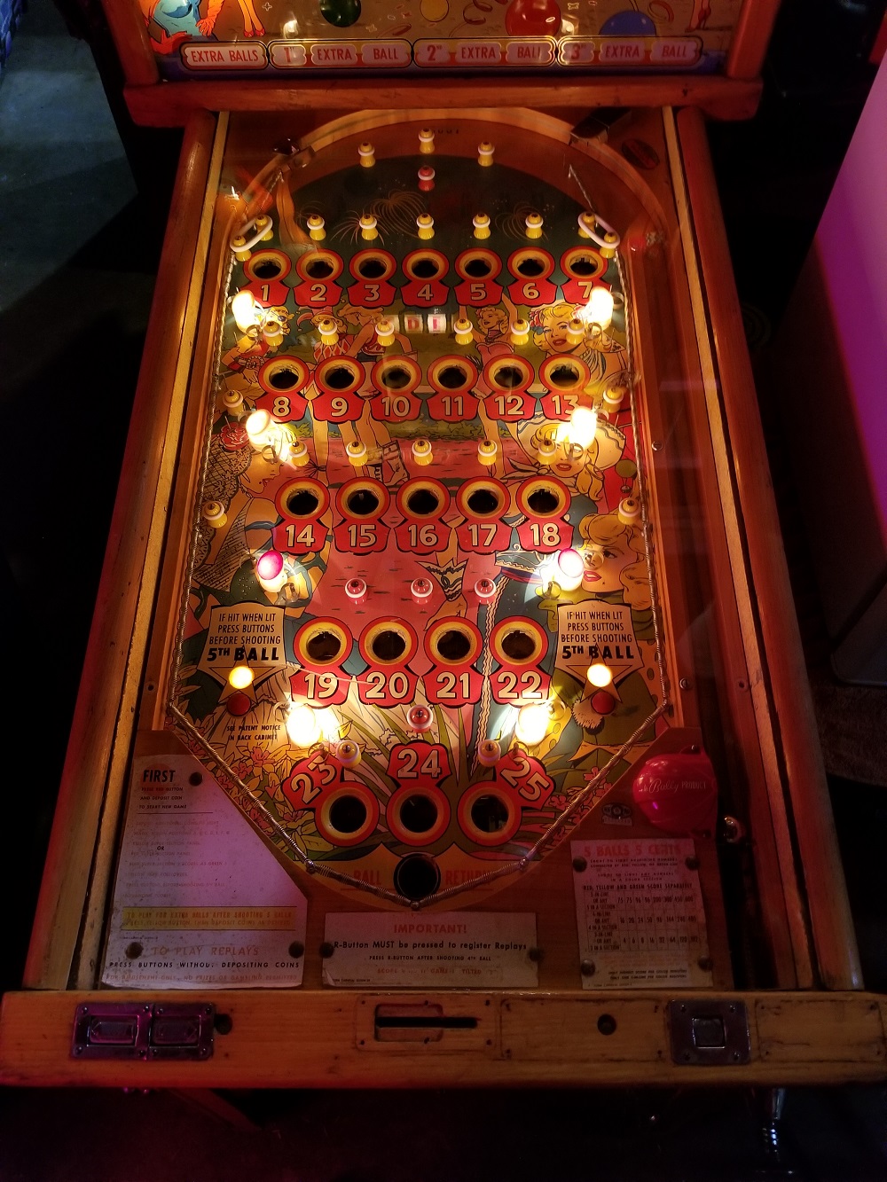 Plays as it should. New rubbers added, cleaned and waxed, balls polished, new bulbs. All locks working. A fun machine to own and play, very addictive. In amazing condition for a 65 year old machine!