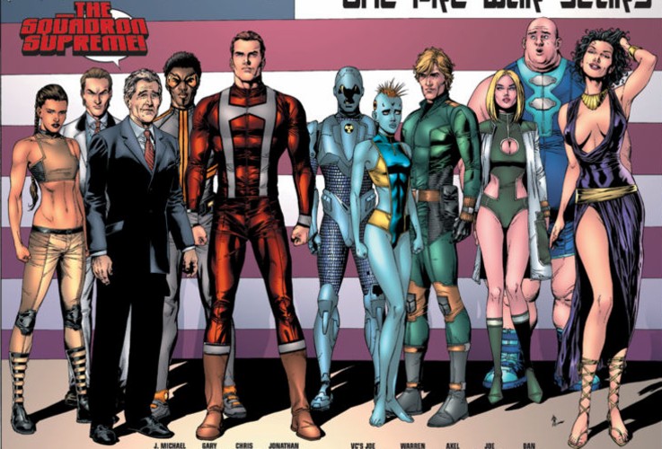 The US military creates two teams of super-powered agents, one for international/public missions and one for covert operations. Mark informs Jason Scott of the project and gives him a list of the super-humans working for the government. The US President gives a press conference and announces that Hyperion, Blur, Doctor Spectrum, Zarda, Amphibian, Tom Thumb, Arcanna, Emil Burbank, Nuke, Shape and Inertia will be operating as the Squadron Supreme.