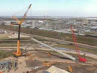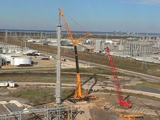 smokeless flare system is being lifted in one piece after being put together