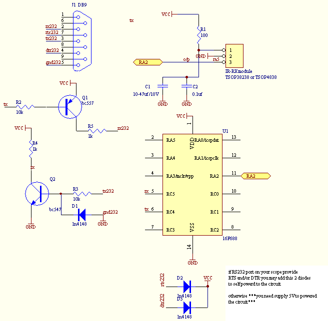 ไอซีสั่งงานสโคป goodwill instek ด้วยรีโมทคอนโทรล เพิ่มความสะดวกการใช้งาน [English] ใน สโคปรุ่นประหยัด เช่น GDS-806s การตั้งค่าบางอย่างจะเป็นแบบวนรอบ ผ่านระบบเมนูและปุ่มกดของตัวสโคป ตัวอย่างเช่น การตั้งชนิดของ trigger รูปแบบวนรอบของสโคปรุ่นนี้จะเป็น auto ,auto level ,normal ,single ขณะกำลังทดสอบวงจรชิ้นหนึ่ง หากส่วนใหญ่ใช้การทริกแบบ normal ในบางขณะอาจต้องใช้แบบ auto แต่เมื่อจะกลับมาใช้แบบ normal อีก คุณต้องกดผ่าน auto level ก่อน ทำให้ระดับ level การทริกถูกเปลี่ยนไป หากข้อจำกัดแบบนี้ทำให้คุณทดสอบงานไม่สะดวกเท่าที่ควร โมดูลนี้คือคำตอบครับ feature: สั่งตั้งค่าเหล่านี้ได้ด้วยการกดปุ่มเดียวบนรีโมตอินฟราเรด ไม่ต้องเข้าระบบเมนู-ปุ่มกดของสโคปอีก 1.สั่งให้ทริกจาก ch1 ch2 หรือ external โดยปุ่มบนรีโมทที่แมพไว้คือ ปุ่ม 4 5 6 2.สั่งให้ทริกจาก rising edge หรือ falling edge โดยปุ่มบนรีโมทที่แมพไว้คือ ปุ่ม 7 8 3.สั่งให้ทริกแบบ normal,auto หรือ single โดยปุ่มบนรีโมทที่แมพไว้คือ ปุ่ม 1 2 3 4.สั่ง ให้แสดงตำแหน่งทริกบนจอชิดด้านซ้ายหรือด้านขวา หรืออยู่ตรงกลาง (ปกติของสโคปรุ่นนี้ การปรับตำแหน่งทริกบนจอจะใช้ปุ่มหมุนปรับ แต่ค่อนข้างช้าไม่ทันใจ) โดยปุ่มบนรีโมทที่แมพไว้คือ ปุ่ม left, ok, right 5. สั่งให้สโคปมี sampling rate ที่ 50000 point สโคปซีรีย์นี้เมื่อตั้งโหมดการทำงานด้าน horizontal เป็น roll เมื่อกลับมาเป็นแบบทริกปกติ sampling rate ยังคงเป็น 500 point ตามโหมด roll โดยปุ่มบนรีโมทที่แมพไว้คือ ปุ่ม menu 6. สั่ง save หรือ recall การตั้งค่าของตัว scope ไว้ใน setup memory ช่องที่ 3 และ 4 โดยปุ่มบนรีโมทที่แมพไว้คือ ปุ่ม red green [save #3 #4] yellow blue [recall #3 #4] หากต้องการใช้กับสโคปยี่ห้ออื่นๆที่มี port RS232 ลองส่ง RS232 command manual (คุณอาจต้องค้นหาจากเวปของผู้ผลิตว่ามีการเผยแพร่ไว้หรือไม่) มาให้เราวิเคราะห์ได้ครับ ราคา 250 บาท เฉพาะ mcu pic 14pin ที่โปรแกรมแล้ว ค่าจัดส่งทางไปรษณีย์ลงทะเบียน 35 บาท หาก ต้องการใช้งานกับรีโมทที่คุณมีอยู่แล้ว ลองส่งรูป-รุ่นมาได้ครับ หากทางเรามีข้อมูลของรีโมทรุ่นนั้น ก็สามารถแมพค่าปุ่มใหม่ได้ ในขณะนี้แมพใช้กับรีโมททีวี toshiba CT-90336 หรือใกล้เคียง และแจก hex file สำหรับ lite version ให้คุณเบิร์นโค๊ดเอง โดยมีฟีเจอร์เฉพาะข้อ 1,2,3 https://drive.google.com/file/d/0B4F39tmZe1dDelRIYTBTSGEwV3M/view?usp=sharing วงจรของโมดูลนี้ ![]() |