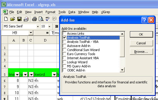 ก่อนใช้โปรแกรม xlgrep นี้ให้ setup ดังนี้