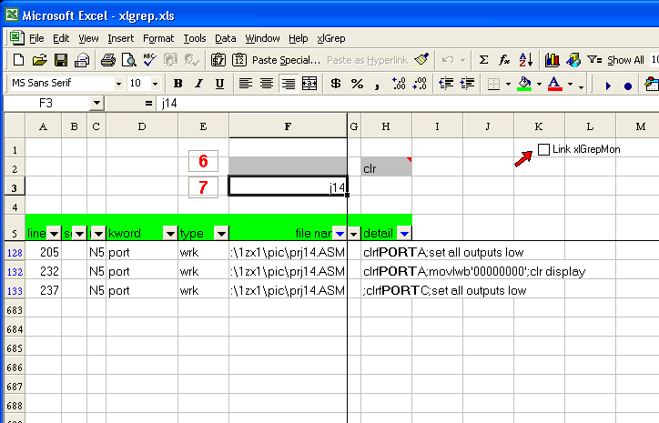 มีโปรแกรมสริม xlGrepMon ช่วยให้ดูรายละเอียดของบรรทัดที่ใกล้เคียงกับผลลัพธ์ที่ได้ โดยไม่ต้องกด ctrl-M บ่อยเกินไป ใช้ในกรณีผลลัพธ์ที่ได้มีมาก และต้องการตรวจสอบมากขึ้น