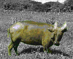Contrary to common belief and past classification, the Tamaraw is not a subspecies of the local Carabao, which is only slightly larger, or the common Water Buffalo. In contrast to the Carabao, it has a number of distinguishing characteristics: it is slightly hairier, has light markings on its face, is not gregarious, and has shorter horns that are somewhat V-shaped.