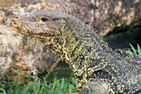 In contrast, the Water Monitor (Varanus salvator) is one of the most widespread lizards in the country and is distributed from the coastal plains up to some parts of the second peneplain in the wet zone. Varanus salvator can attain total lengths of 3 meters, thus it is the second largest lizard in the world, second only to the Komodo dragon (Varanus comodonensis) of the Indonesian islands.