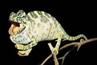 The Chameleon is a very slow moving species. It has the ability to rotate its eyes independently. The tongue can be 'shot out' to a distance almost equal to the length of its body in order to catch insects, which it feeds on.