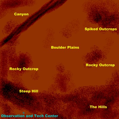 Gojira was chosen for obvious reasons. King Ghidorah was chosen due to his many historic appearances, success in WMW's tag-team division, and because he has been voted the fan favorite "Bad Kaiju" (tied with Destoroyah). Mothra is also here due to historic appearances, as well as being one of the most recognizable kaiju around. Gorgo was chosen not due to her long history, but her success in WMW. She has won the United States title three times; the first time a belt has been won that many times in WMW. She is also good at holding onto it. Bagan is in the tourney due to being the current World Champion, as well as his obvious raw power. Kong is a classic; he has been stomping cities since the 1930's. He hasn't been all too successful, but he is an American icon, and is here to represent the United States. Gamera was chosen for the same obvious reasons as Gojira. Anguirus was originally suppose to be in the tournament due to being the current Japan Champion, but he backed out to let his good friend Rodan in. Rodan is more than worthy to be with the rest here. Not only does he have widespread notoriety, but has been successful in WMW before, especially with the World Title. These eight kaiju are the participants, but there can be only one winner! The rules are the same they usually have been here at WMW. If a monster pins, kills, or causes their opponent to submit, then they win the match and go on. These bouts will not take place on the usual Battle Island, but far from it. The monsters are here now and ready to do battle on the one and only Planet-X! Situated in an orbit close to Jupiter, this dark and barren planet was only recently discovered in 1966. However, upon landing and exploring, the astronauts of Earth found that it was inhabited. The Planet-Xers then proceeded to try to take over the Earth, but were defeated by a simple sound. They then became allies of Earth, and are now considered a sort of separate country. WMW has had close relations with a number of the populace, using their technology to make WMW possible. Now, in conjunction with our counterpart, the XMW, we bring you this tournament of champions! The field of battle seen in the map below is a typical one, chosen because it is typical. With nothing but dirt and rocks to use, it truly is a one on one match. So now, it is time to begin the tournament to decide the King of the Monsters!