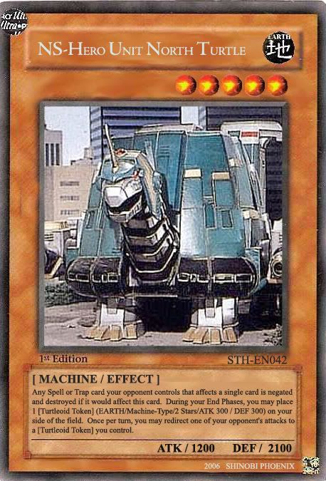 EFFECT: Any Spell or Trap card your opponent controls that affects a single card is negated and destroyed if it would affect this card. During your End Phases, you may place 1 [Turtleoid Token] (EARTH/Machine-Type/2 Stars/ATK 300 / DEF 300) on your side of the field. Once per turn, you may redirect one of your opponent's attacks to a [Turtleoid Token] you control.