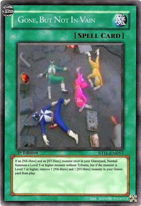 EFFECT: If an [NS-Hero] and an [ST-Hero] monster exist in your Graveyard, Normal Summon a Level 5 or higher monster without Tributes, but if the monster is Level 7 or higher, remove 1 [NS-Hero] and 1 [ST-Hero] monster in your Graveyard from play.