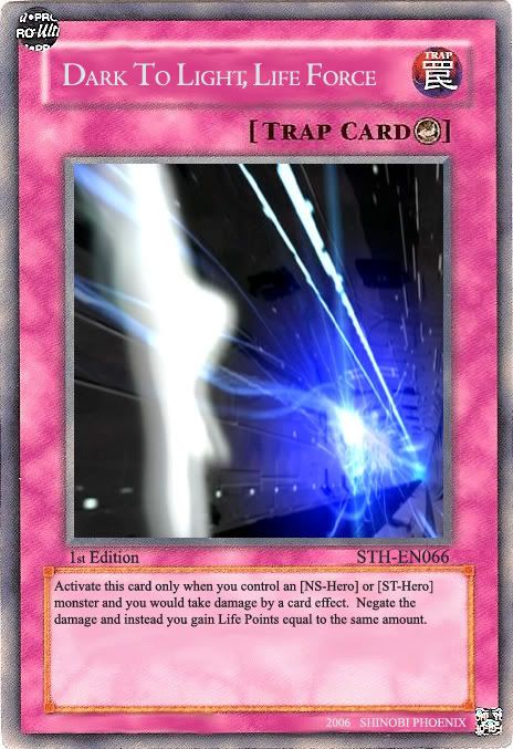 EFFECT: Activate this card only when you control an [NS-Hero] or [ST-Hero] monster and you would take damage by a card effect. Negate the damage and instead you gain Life Points equal to the same amount.