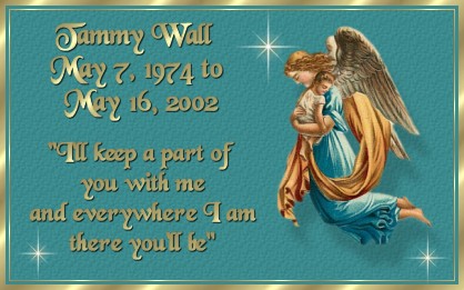 Rescue Network. In doing this she fostered sometimes old, sometimes ill, yorkies until they could be adopted. Her love for animals didn't end there. I became sort of a "foster mom" for some kittens, one of which had been dropped to the ground by a hawk. This poor kitten struggled to survive, but to no avail. One evening I called Tammy to tell her that this one kitten was not going to make it. Within minutes, Tammy was at my house, and the desicion was made to put the kitten to sleep. Without hesitation Tammy and my two oldest daughters took the kitten to the vet, while I kept our eight year old daughters with me. Tammy brought the kitten home to be burried in her backyard. That is only one of many stories about Tammy's love and kindness. No matter what the situation, Tammy was always willing to help a friend or animal for that matter who was in need. Tammy was more like a sister than a friend to me. Rarely do we meet someone in our lives that instantly becomes our friend and soon becomes a part of our family, however, Tammy was just that kind of person.Her daughter Taylor was a big part of our lives as well. Tammy ended her life on May 16, 2002 just hours before Taylor came home from school. When Taylor arrived home that day, a fireman told her to go to her friend Amanda's house. With us is where Taylor stayed until Tammy's family arrived from out of state. It was a very difficult time for all of us, and though Taylor had many questions, and cried lots of tears, she is the reason that myself and my daughters got through this terrible experience. Tammy loved and collected angels, and now she is an angel herself. I know that she is in heaven watching over us. We love and miss you Tammy.