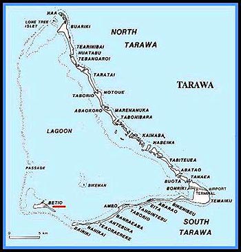 Tarawa is an atoll, tiny strips of sand forming a ring around a large lagoon. The main centers of Betio and Bairiki are now joined by a causeway about three miles long. The unfortunate consequence of this is that the water flow has been restricted so that this part of the lagoon is not flushed out sufficiently. The anchorage is infested with the byproducts of a population of 30,000. You do not swim here!
