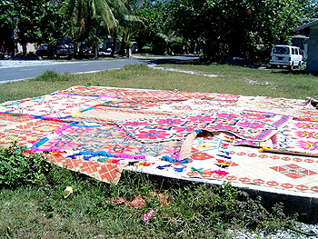 So with repairs completed and weather deteriorating we decided to save the best of Tuvalu for our next visit. We did not get out to the outer islands, pristine beaches and sparkling reefs that we know are on the other side of the lagoon. We had enjoyed the friendly people, the colorful weaving, and had an interesting bike ride around the main part of the island.