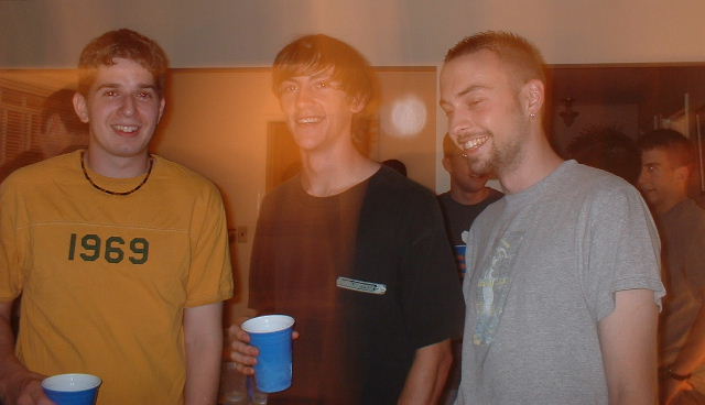 So....we finally made it to the party after the picture-taking session....but we managed to lose 4 games of pong...hehe...then half of St. Marys showed up (by our inviting)...This is Dan, Will, and Adam: