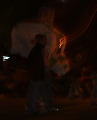 Since we were being obnoxious little kids yelling for candy, I decided to yell at Batman so I could take his picture. Little did I know that he could come right in front of us and swing his cape at my face!!:
