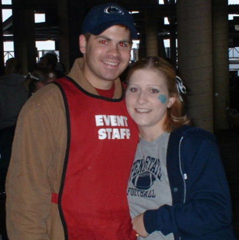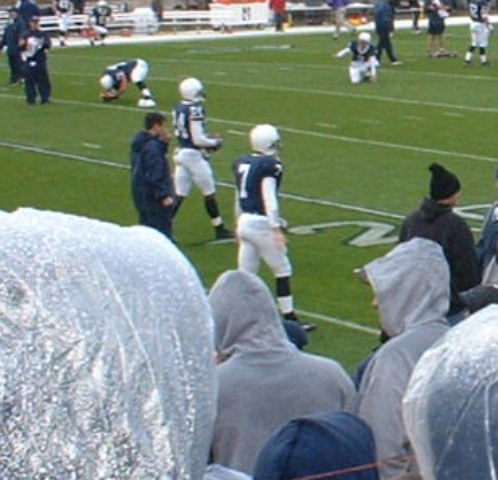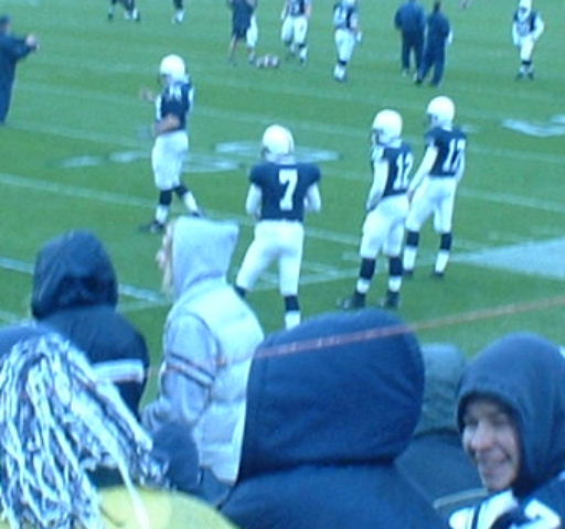 We were standing under the stadium hiding from the rain before the game, so we decided to get our picture taken again: