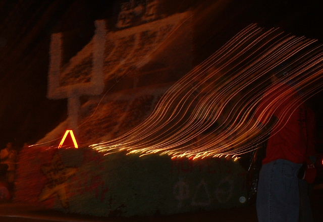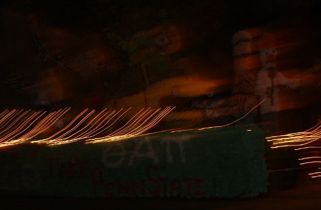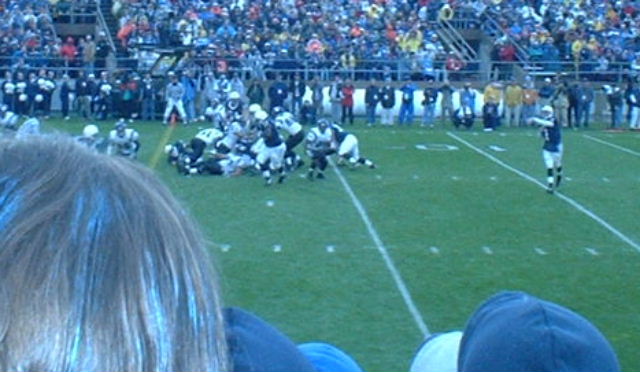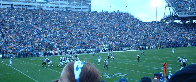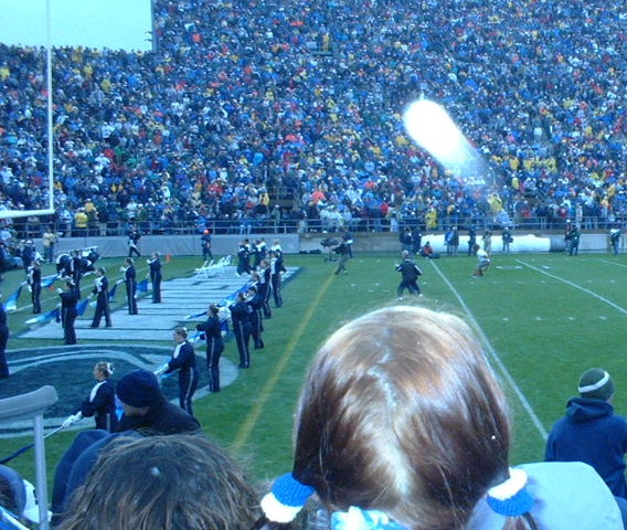 The Lion posed as Indiana Jones during the half-time show, and I somehow got this comet-type thing in the picture.....something weird always happens with my pictures at Beaver Stadium: