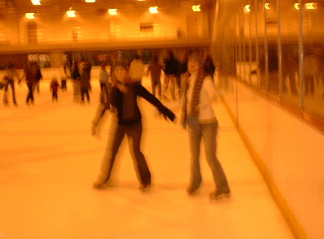 This is Mel and I attempting to go backwards, which didn't work out too well...especially with little speed skating kids flying around everywhere:
