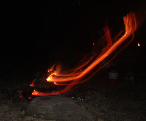 Leslie dancing by the fire:
