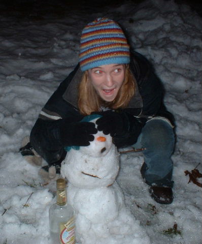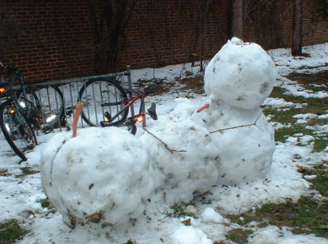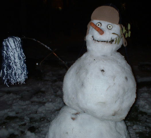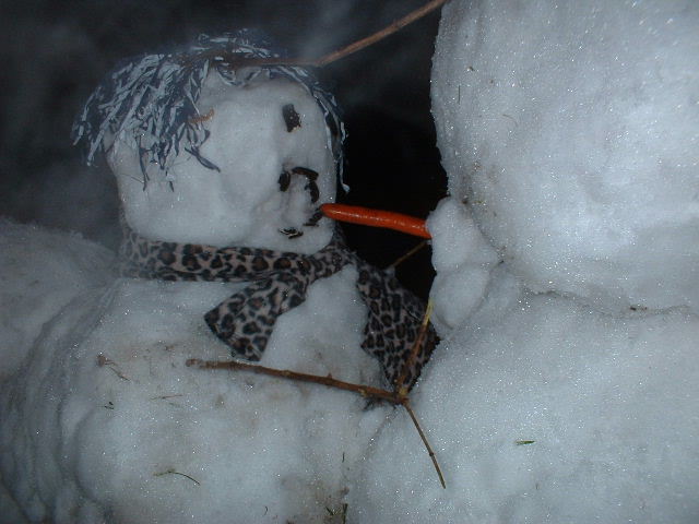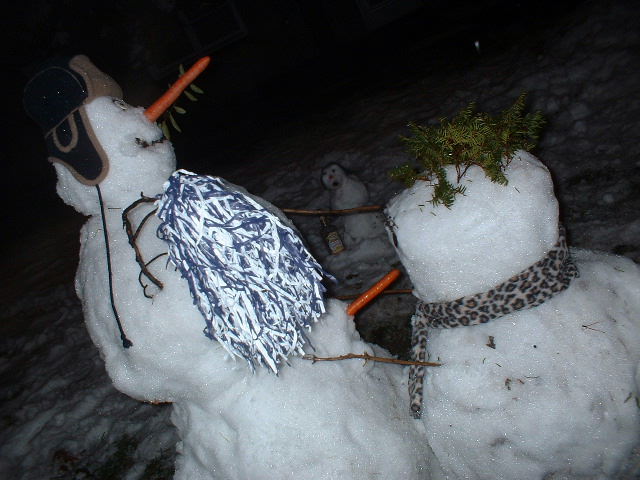 We later caught the culprits and yelled out the window to them, and they admitted to being mad that the snowman got more head than they did (and saying some crap about it being lude and crude..haha):