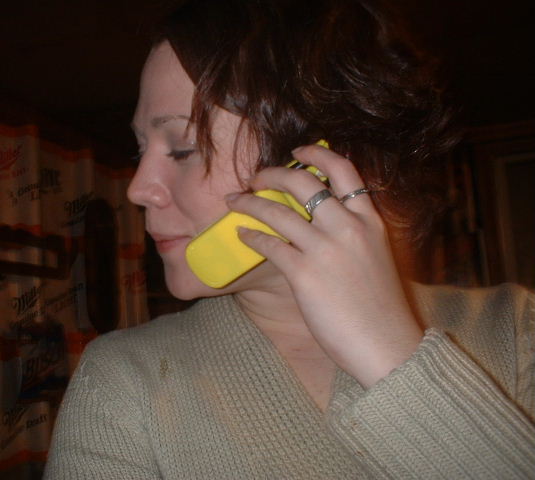 Kel talking on my fake phone (see below):