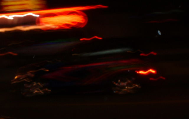 We saw an awesome PT Cruiser (even though I normally think they look like bulldogs) with all kinds of neon painting: