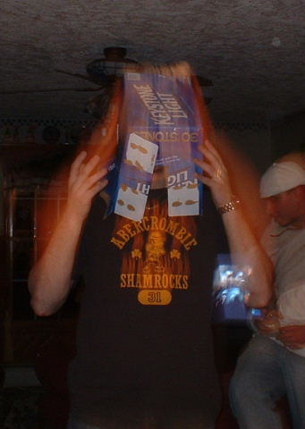Even though I won the first game all by myself, Marc and Luke ended up winning the next two, so Marc said he would wear the case on his head (since he won!...haha..that doesn't make sense to me either):