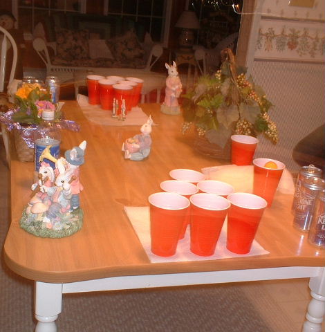 Luke decided that we should play some Easter pong: