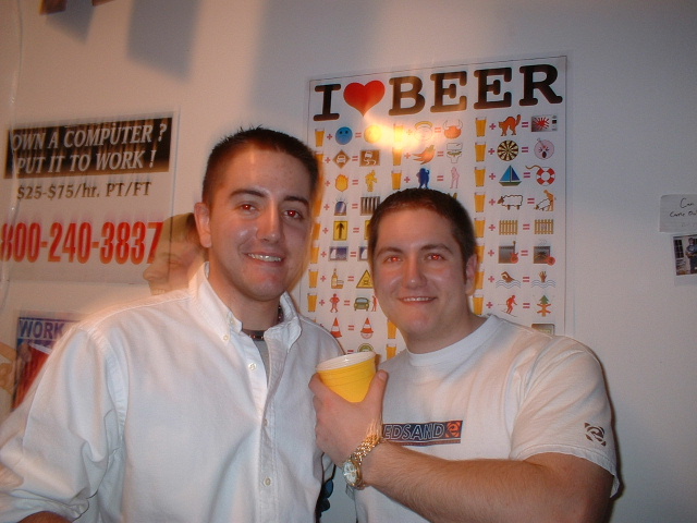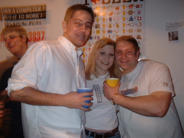 The IUP Guys, Derek and Mooter: Wendy and I Hiding in the Closet (don't ask!): Wendy and Eric: Ryan (and Buddy) - check out the arrow sign...very very true: Wendy, Wendy, Wendy