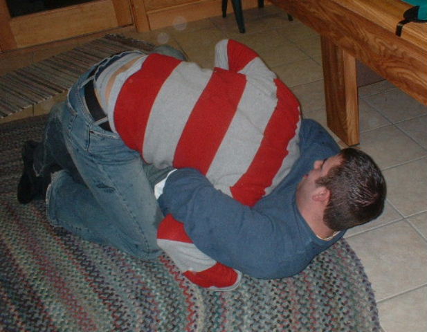 Luke slammed Marc onto the floor..and wrestling broke out: